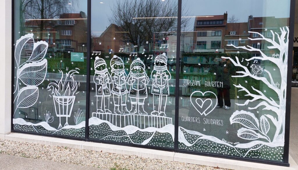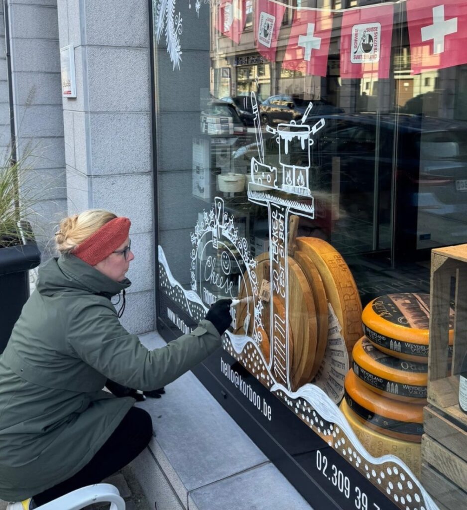 Ik maak schilderingen en tekeningen op ramen, binnen- of buitenmuren en krijtborden – met poscastiften of verf. Jij kiest daarbij zelf het thema.
